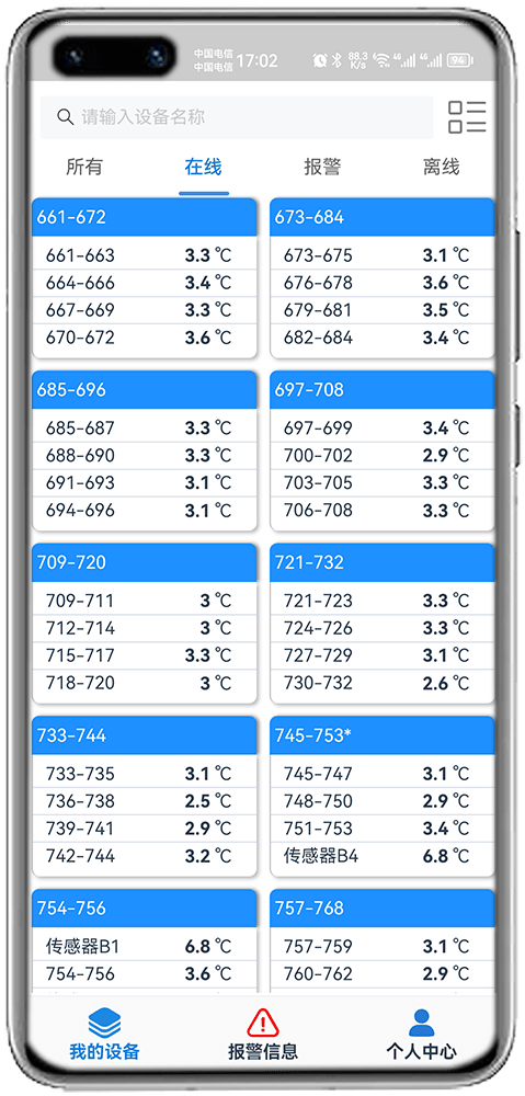 l多种报警预警:现场声光报警(内置蜂鸣器,屏闪),微信报警推送,APP报警提示;